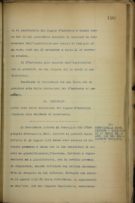 Comunicazioni: a) dimissioni dell'impiegato D'Ambrosio Vincenzo Gino; b) Steccanella Isidoro. Dimissioni ai sensi dell'art. 119 del regolamento organico
