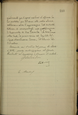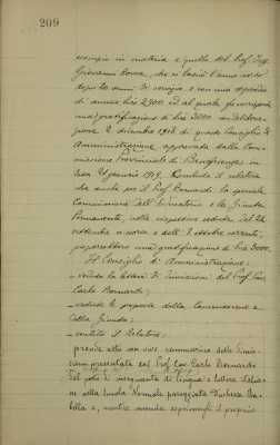 Prof. dott. cav. Carlo Bernardi. Dimissioni dal posto di insegnante di lingua e lettere italiane nella Scuola Normale pareggiata EDI. Proposta di gratificazione di buonuscita