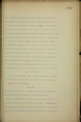 Borse a favore di vedove povere con prole. Proposta di modifica dell'art. V del regolamento