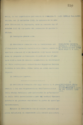 Comunicazioni: a) dimissioni dell'impiegato Durelli Mario; b) EDI, sorveglianti straordinarie Poletti e Data; c) Associazione della Stampa Subalpina, sottoscrizione a favore dei bambini viennesi