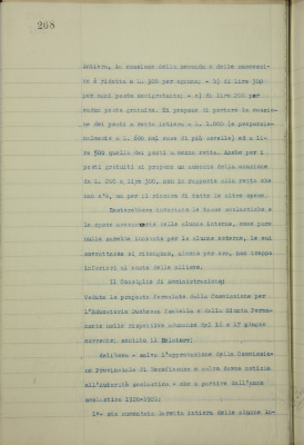 EDI. Proposta di aumento delle rette delle alunne interne a partire dall'anno scolastico 1920-1921