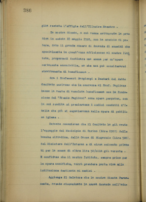 Comitato per le onoranze al prof. Luigi Pagliani, nella ricorrenza del suo cinquantesimo anniversario di laurea. Domanda di contributo per una fondazione «Luigi Pagliani»