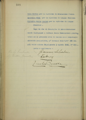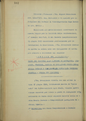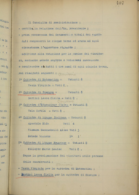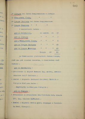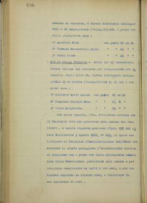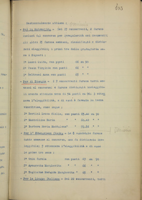 Esito dei concorsi alle cattedre di matematica, italiano, francese, disegno ed educazione fisica della Scuola Normale e Complementare pareggiata Duchessa Isabella. Nomina dei vincitori