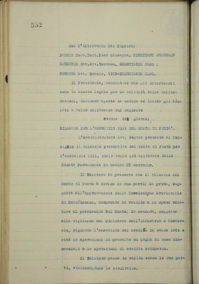 Bilancio per l'esercizio 1921 del Monte di pietà