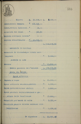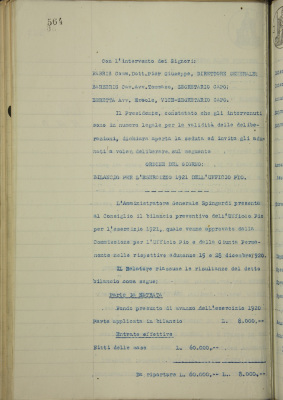 Bilancio per l'esercizio 1921 dell'Ufficio Pio