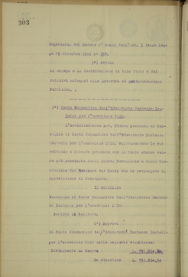 Conto consuntivo dell'Ufficio Pio per l'esercizio 1920