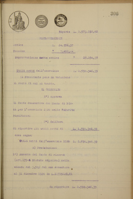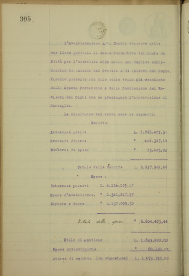 Conto consuntivo del Monte di pietà per l'esercizio 1920 e progetto di riparto degli utili netti 1920 del Monte
