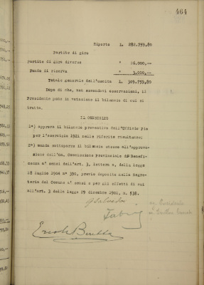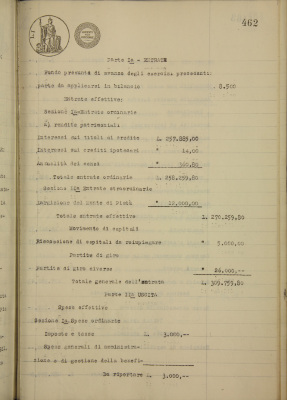 Bilancio preventivo dell'Ufficio Pio per l'esercizio 1922