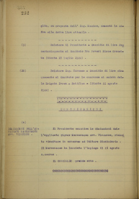 Comunicazioni: a) dimissioni dell'applicato Marzanasco Vincenzo; b) anticipazioni su cartelle San Paolo mediante deposito di certificato nominativo