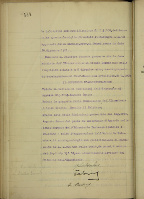 EDI. Dimissioni del prof. Augusto Sacco, insegnante di Agraria. Proposta di gratificazione di buonuscita