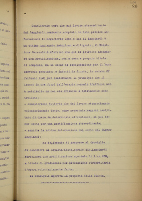 Proposta di gratificazione per lavoro straordinario al copista dattilografo Leggiadri Bartolomeo