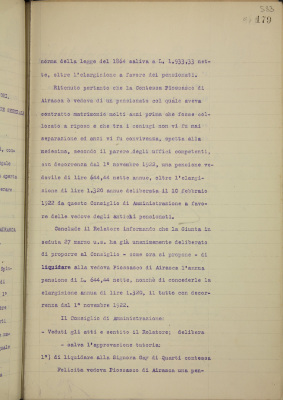 Gay di Quarti Felicita, vedova Piossasco D'Irasca Carlo Alberto. Liquidazione di pensione