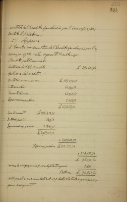 Conti consuntivi per l'esercizio 1922 del Credito fondiario (quelli dell'Ufficio pio, EDI, Monte di pietà in verbali a parte)