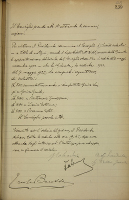 Comunicazioni: a) affari finanziari di maggiore importanza deliberati dalla giunta; b) sussidi scolastici concessi dalla Giunta in seduta del 7 maggio 1923.