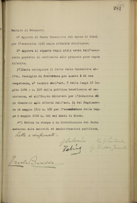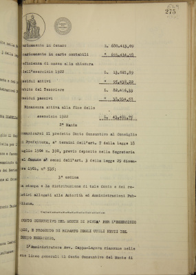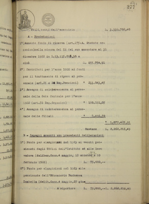 Conto consuntivo per l'esercizio 1922 del Monte di pietà e progetto di riparto degli utili netti del detto esercizio