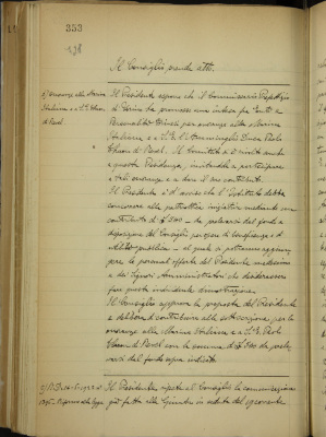 Comunicazioni: a) deliberazioni finanziarie importanti; b) onoranze alla Marina Italiana e a S. E. l'ammiraglio duca Paolo Thaon di Revel; c) Regio decreto 14/06/1923 n. 1396 - Riforma alla legge sui Monti di pietà