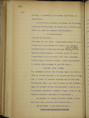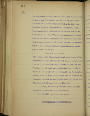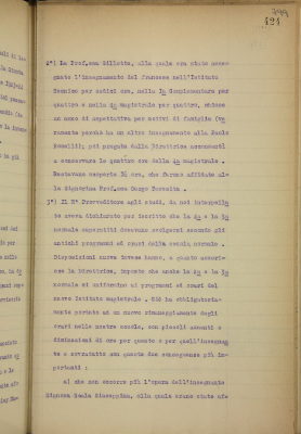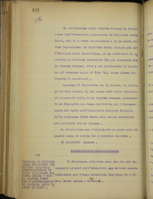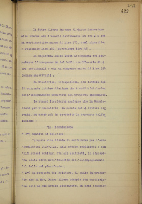 f) proposta di conferma anche per l'anno scolastico 1923-1924 dell'insegnante di canto gregoriano reverendo padre Albera e della signora Torri per l'accompagnamento musicale delle lezioni di ballo;