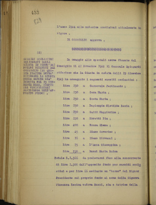 Sussidi scolastici deliberati dalla Giunta in virtù dei poteri ricevuti dal Consiglio (su questa pratica dovrà tornare la Giunta nella seduta già indetta per il 19 corrente mese, stante una verificatasi deficienza dell'apposito fondo):