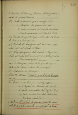 Il verbale di questa seconda parte viene redatto a parte e raccolto in ispeciale volume, con le norme vigenti per i verbali delle Opere Pie. 6. Conti consuntivi per l'esercizio 1925: