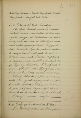 Parte prima - Aziende di Credito 6. Eventuali e diverse: I. Ritratto dell'ex presidente signor conte ing. Salvadori: ratifica II. Deleghe permanenti per le dichiarazioni di Terzo III. Nostro rappresentante nella R. Scuola di Ingegneria di Torino