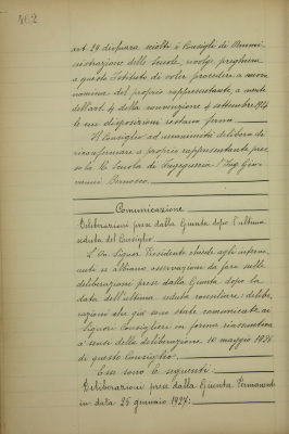 Comunicazioni: deliberazioni prese dalla Giunta dopo la seduta dell'ultimo consiglio