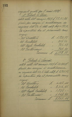 Parte prima - Aziende di Credito 6. Personale delle Filiali. Assegni di cointeressenza per l'esercizio 1927