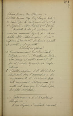 1. Comunicazione del Presidente: telegramma di S. Eccellenza Federazioni circa il nostro contributo per il Credito Agrario in Tripolitania