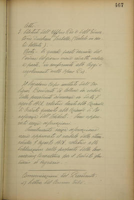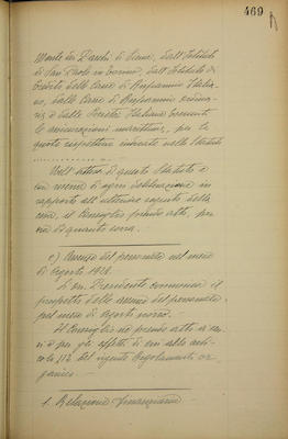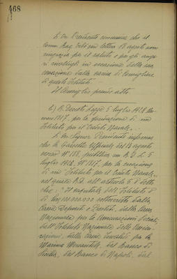 Comunicazioni del presidente: lettera del commendator Tibò; RDL 5 luglio 1928 n. 1817 che chiama il nostro Istituto a partecipare alla formazione del capitale del nuovo Istituto per il credito navale; assenze del personale nell'agosto 1928