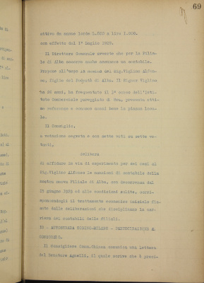 Parte prima - Aziende di Credito 9. Nomina dei segretari dott. Rag. Agostino Borri e Marchisio rag. Pietro a direttori di filiale di seconda classe in prova