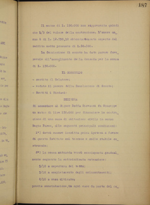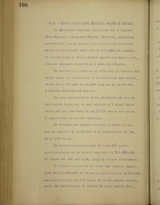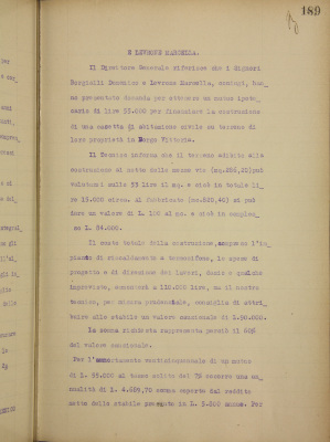 Parte prima - Aziende di Credito 2. Domande di mutuo: a) Boffa Giovanni b) Borgialli Domenico c) Casalini Ghesio Volpengo Ines d) Carrera Giovanni Battista e) Florio Fratelli f) Giani Giuseppe cav. g) Golzio Emanuele cav. h) Maggi Carlo ing.