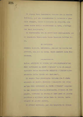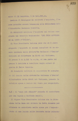 a) Acquisto di volume del generale Brancaccio «Dal Nido Savoiardo al Trono d'Italia» e di un numero speciale della rivista «Bellezze d'Italia», illustrativo della Città del Vaticano