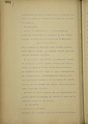 12. Domande di sussidio: a) del R. Convitto delle Vedove e Nubili di Torino b) dell'Istituto di San Giuseppe in Chivasso c) della signora Resiale Polissena in Toffali