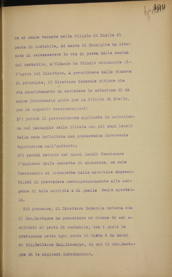 Parte prima - Aziende di Credito 5. Filiale di Biella. Provvedimenti circa il posto di direttore ed eventualmente circa quello di contabile
