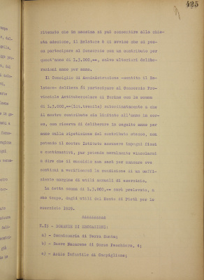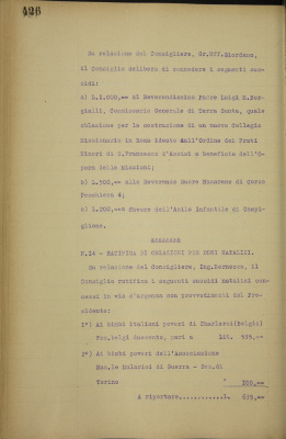 Parte prima - Aziende di Credito 13. Domande di erogazioni: a) Commissaria di Terra Santa b) Suore Nazarene di corso Peschiera n. 4 c) Asilo infantile di Campiglione
