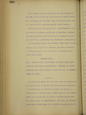 Parte prima - Aziende di Credito 8. Federazione Provinciale di Aosta dell'Associazione Nazionale Combattenti. Domanda di mutuo edilizio per costruzione di case per gli ex combattenti in Aosta