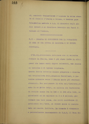 Parte prima - Aziende di Credito 11. Domanda di contributo per la Fondazione in Roma di una scuola di medicina e di igiene tropicale