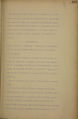 Parte prima - Aziende di Credito 13. Filiale di Pinerolo. Proposta di fornitura di un secondo armadio corazzato per le cassette di sicurezza