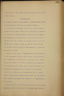 Parte prima - Aziende di Credito 8. Sig. Marchisio rag. Pietro - conferma nel posto di direttore di filiale di seconda classe