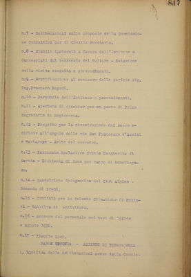 1. Ratifica delle deliberazioni prese dalla Commissione per l'Ufficio Pio nelle sedute del 1°, 11 e 21 agosto 1930