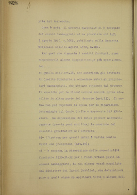 Parte prima - Aziende di Credito 8. Stabili ipotecati a favore dell'Istituto e danneggiati dal terremoto del Vulture. Relazione sulla visita eseguita e provvedimenti