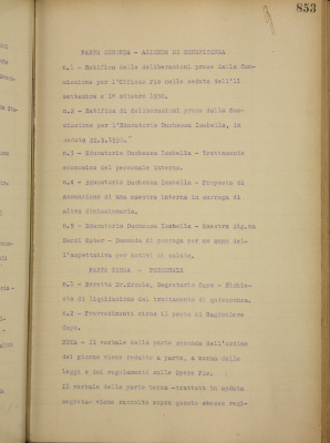 (Il verbale di questa parte terza - trattata in seduta segreta - viene raccolto sopra questo stesso registro vidimato)