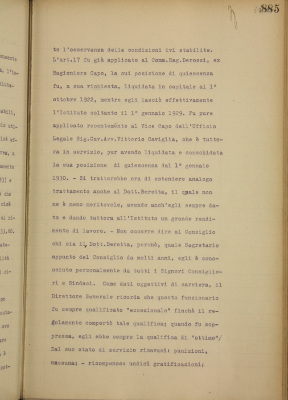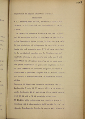 Parte Terza - Personale 1. Beretta cav. dr. Ercole, segretario capo - richiesta di liquidazione del trattamento di quiescenza