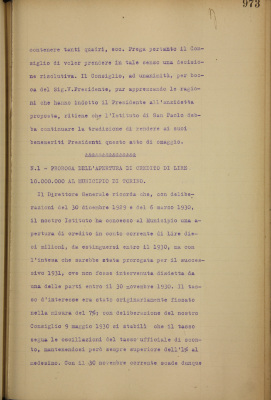 Parte prima - Aziende di Credito 1. Proroga dell'apertura di credito di Lire 10.000.000 al Municipio di Torino