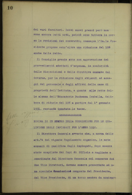 Comunicazioni del Presidente: smobilizzo di quota della nostra partecipazione all'Istituto federale di credito agrario per il Piemonte; riduzioni; nomina di un membro della Commissione delle qualifiche degli impiegati per l'anno 1930; nomina di rappresentanti del nostro Istituto in altri enti; assenze personale novembre 1930