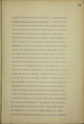 Parte prima - Aziende di Credito 4. Sig. Bricarelli dott. Gioachino. Proposta di nomina definitiva all'impiego e di conferma nel grado di direttore di filiale di seconda classe