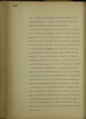Parte prima - Aziende di Credito 12. Associazione Nazionale fra le Casse di Risparmio Italiane. Domanda di contributo per una fondazione «Cesare Ferrero di Cambiano»