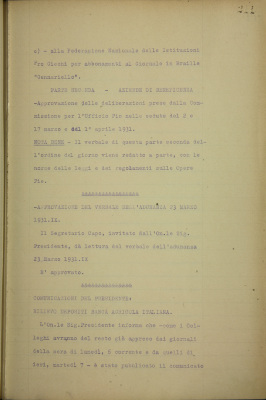 Comunicazioni del Presidente: rilievo dei depositi della Banca Agricola Italiana; assenze personale febbraio-marzo 1931
