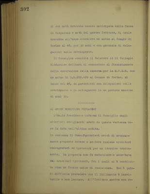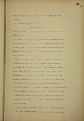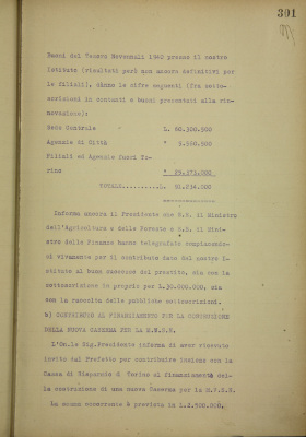 Comunicazioni del Presidente: sottoscrizione dei buoni del Tesoro 1940; contributo al finanziamento per la costruzione della nuova caserma per la M.V.S.N.; mutui bonifiche ferraresi; rilievo depositi e dipendenze della Banca Agricola Italiana, comunicazioni; assenze personale maggio 1931