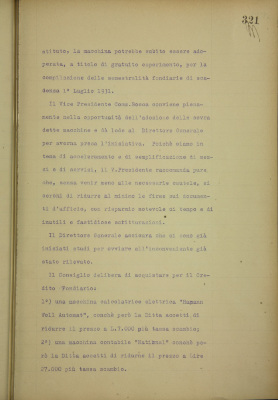 Parte prima - Aziende di Credito 7. Provvista di due macchine calcolatrici per la ragioneria del Credito Fondiario