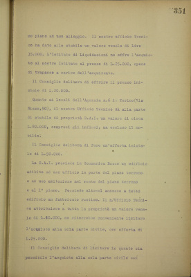 Parte prima - Aziende di Credito 9. Acquisto o affitto di locali della ex Banca Agricola Italiana nelle sedi di Bra, Casale Monferrato, Rivoli, Sommariva Bosco, Torino (agenzia 6 - via Nizza, n. 50)